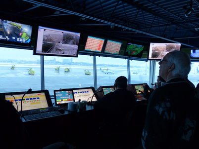 Pour la visite guidée, nous étions divisés en deux groupes. M. Gabriel Lépine était le guide du premier groupe tandis que M. Mario Lépine prenait en charge le deuxième groupe. Nous avons pu bénéficier d’un cours accéléré sur l’art et la science du dégivrage et de l’antigivrage des avions par de vrais experts en la matière. Le point culminant de la rencontre fut l’accès à la tour de contrôle d’où on a pu observer le travail des contrôleurs et les manoeuvres des opérateurs des camions de dégivrage. Tout un spectacle ! Le mauvais temps nous aura permis de voir toute cette machinerie en action.